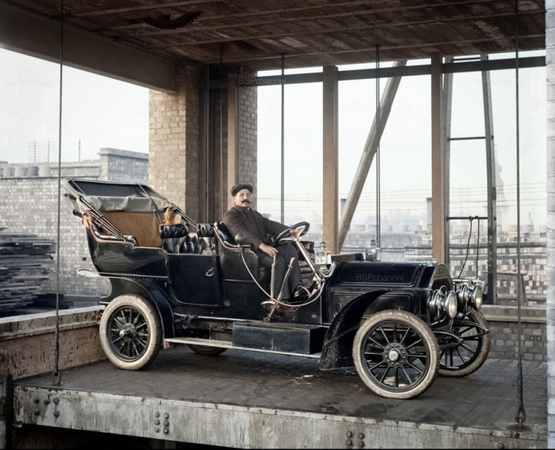 Car lift at Mitchell Motors, 114 Wardour Street, Westminster, London, 1907.