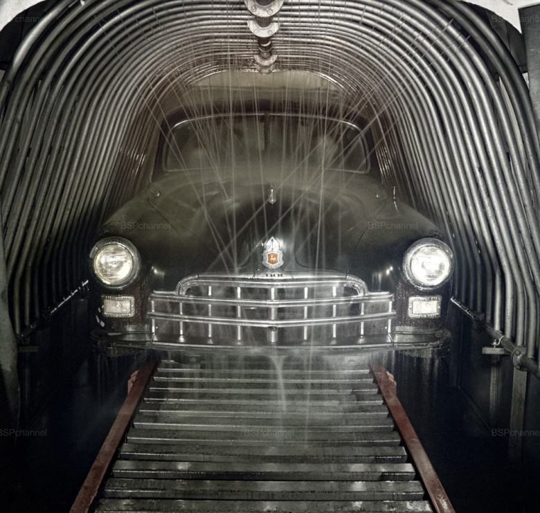 Tightness testing of a ZIM body at the Molotov Gorky Automobile Plant. Gorky, 1955.