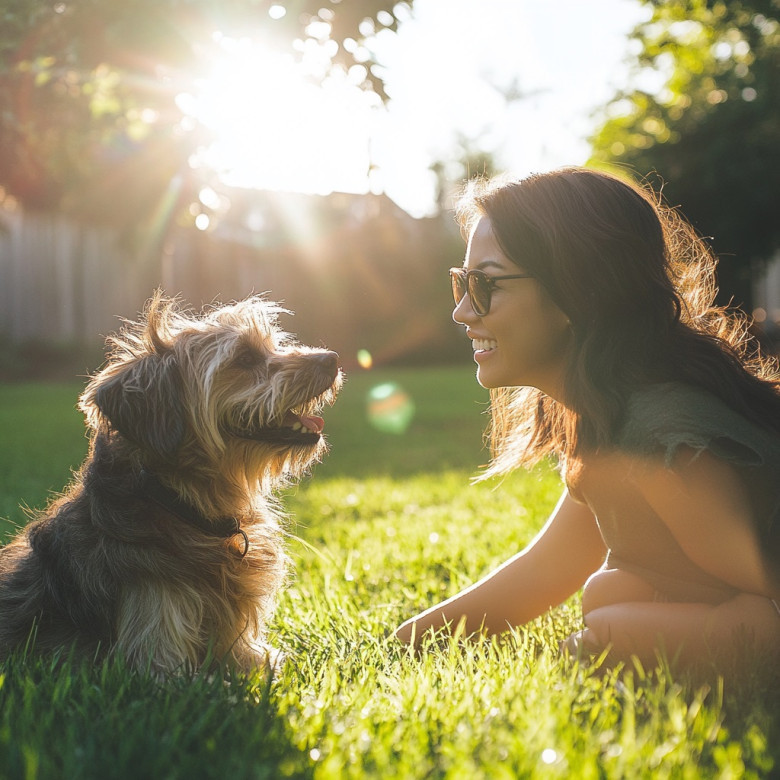 Lisa set her coffee cup gently on the garden table and drew a deep breath of the fresh morning air. On the lawn, Luna, her playful puppy, darted happily among the daisies, chasing butterflies with unbridled zest. Smiling, Lisa took another sip of coffee and savored the quiet, golden morning.